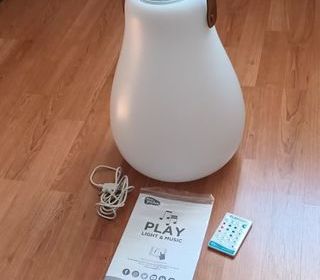 Lampe baladeuse avec enceinte rechargeable pour extérieur, LED variable RGB 45lm, IP43, H.37 x l.27,5 cm, New Garden Play Light and Music. Etat neuf parfait pour l'apéro en terrass