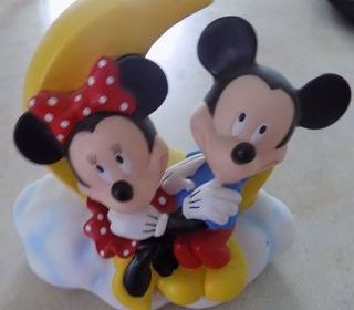 Très belle tirelire Mickey et Minnie assis sur un morceau de lune reposant sur un nuage 19 cm de haut