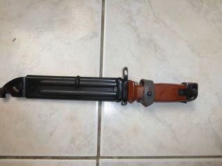 Baionnette Est-Allemande NVA pour AK-74 avec rare poignée orange. N° avec 6 chiffres est gravée à la main sur la poignée. Un autre N° avec 6 chiffres est gravée à la main aussi su