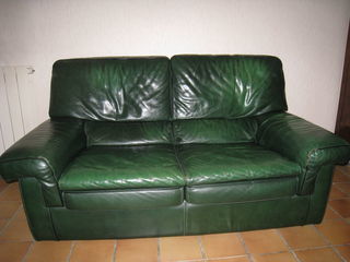 Pour cause déménagement, vend canapé en cuir buffle pleine fleur pigmenté, couleur vert, 2 places , non convertible, quelques marques d'usure , cuir center . dimensions : 152 X 85