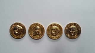 Lot de 4 jetons Total . Jeons publicitaires de stations service . Année : 1970 . Représentant : Léon Gambetta - Aristide Briand - Adolphe Thiers- Jules Ferry . Excellent état