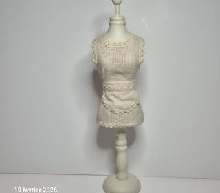 Petit mannequin porte bijoux ou simplement décoratif Il est en bois et le tissu est en lin ou coton fin dimension 41 cm de haut et bien stabl