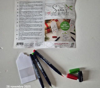 Tombow Le petit assistant du Père Noël comprend 3 stylos pinceaux Fudenosuke, 10 étiquettes cadeaux et 1 guide en anglais Le petit assistant du Père N