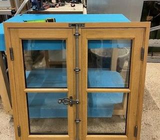 FENETRE CHENE MASSIF A L'ANCIENNE. Ouverture par crémone a crochet en acier couleur laiton vieilli. Double joint. Largeur 100cm hauteur 100cm épaisseur 8cm. Lasuré chêne claire