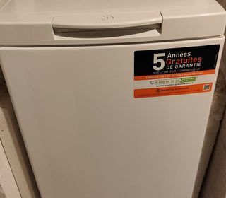 A vendre machine à laver Indesit à chargement par le dessus (largeur 40 cm), pour cause de double emploi. 7kg de linge/1200 tours minute/énergie A+++ Elle est en bon état et a pe