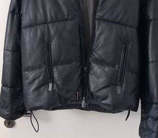 Superbe doudoune noire en cuir matelassée Femme Marque Oakwood Modèle Wanda Métal Taille M Avec capuche/fermeture éclair/liens de serrage/poches zippées... A récupérer sur pl
