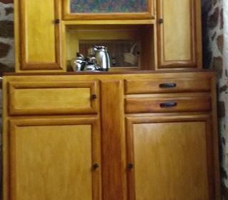 Vendre buffet en bois massif noyer style Louis XIII , longueur 2,50m, étagères en bois dont certaines en verre, 4 tiroirs. Le buffet se démonte pour le transport.