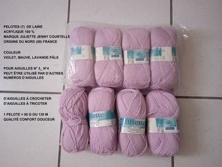 Pelote (9) de laine bleu clair perlée _ Neuves __ Jamais utilisées _ Marque Designed by B.D.V. France _ Acrylique 100 % _ 1 pelote = 50 g soit 150 m à 200 m environ _ Aig