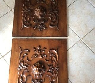 2 éléments de Boiseries en noyer et anciennes sculptées Têtes de Lions 0.56 par 0.56 Très bon état à prendre sur place uniquement Pas de paiement en ligne merci