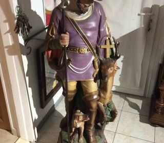 Sculpture Fin 19eme siècle Terre cuite 1 mètre 50 avec son socle en bois 1 mètre 30 sans Fin 19eme Saint Hubert Patron des métiers de l'environnement et des chasseurs P