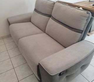 Canapé BUT gris clair/gris foncé, acheté il y a un an. Fonction relax très agréable. Très bon état général, présence de rares traces de griffures. A venir chercher sur plac