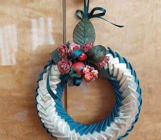 Une couronne de Noël A suspendre à une porte d'entrée Doré, vert et blanc Diamètre : 23 cm