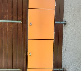 Vends meuble de rangement 4 casiers en PVC expansé phénolique très résistant fermeture par moraillon porte cadenas l 43cm x p 50cm x h 180cm très bon état
