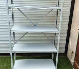 Vends rayonnage métallique blanc 5 étagères en très bon état l 107cm x p 43cm x h 200cm