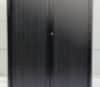 Vends armoire haute métallique noire portes à rideaux 4 étagères en très bon état l 120cm x p 45cm x h 198cm