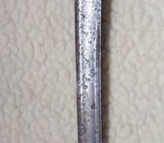Sabre d'officier d'infanterie modèle 1845. Monture en laiton doré, garde à deux branches. Lame courbe à dos plat. Longueur totale : 83 cm Longueur lame : 77 cm Largeur lame :