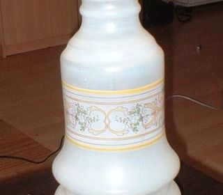Lampe en pâte de verre avec frise de décor peint Particulier vends d'occasion une très belle lampe en verre avec frise de décor peint. Piétement et col en cuivre . Diamètre 1