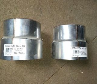 Description Vend 2 réductions inox neuves de 167/153 de diamètre, plus 3 manchons de 125 ml neuves plus une bouche de soufflage de 125 ml