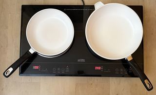 Plaque 2 feux 1400w et 2000w. Branchement sur prise standard 16A / 220V Réglage de 1 à 10 sur chaque feu ou en température de 60 à 240 degré C. Timer en mn sur chaque feu. Néce