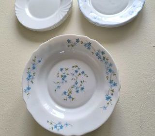 11 assiettes creuses fleurs bleues Arcopal 4 assiettes à dessert fleurs bleues 4 assiettes à dessert blanches