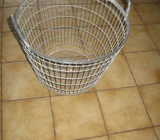 vend un ancien panier à pommes de terre en métal, manne pour récolter les légumes, encore fonctionnelle ou pour décor vintage....... , 35 cm de haut, 45 cm de diamètre , 2 anses ,
