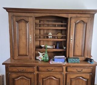A démonter et a prendre sur place Buffet Vaisselier Longueur, profondeur et hauteur meuble bas : 2,10 - 0,50 - 1,00 Longueur, profondeur et hauteur meuble haut : 1,88 - 0,30 -1