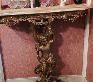 ravissante console de style colori doré avec plateau de marbre. miroir doré en bois. ravissant ensemble soit dans une entrée ou dans une chambre. Très bon état.