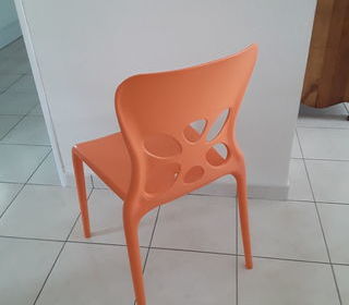 3 chaises en polypropylène de chez "Cuisines Références" Couleur orange POUR UTILISATION : en INTERIEUR ou en EXTERIEUR, Elles n'ont jamais servies en extérieur, assise conforta