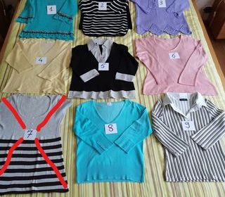 Vends 9 pulls n°1* pull turquoise col rond taille 38/40 - 3€ n°2 * pull noir rayé blanc Promod taille 38 - 3€ n°3 * pull violet Etam taille 36 - 3€ n°4 * pull jaune taille 36/3