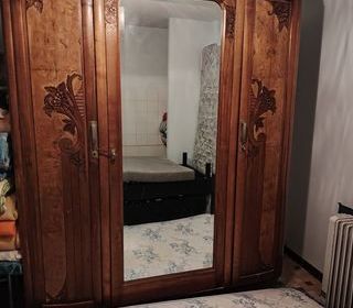 Armoire 3 portes avec glace. Dimensions : 185 x 45 - glace : 155x55.Grande capacité de rangement. Très bon état général.