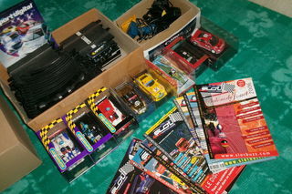 Ensemble circuit routier automobile Scalextric excellent état et fonctionnel. Marque principale Scalextric (rails et commandes). Voitures Scalextric, Fly, Ninco et SCX + magazines