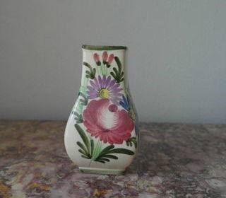 Joli vase en céramique de la marque Saint Clément, décoré de motifs floraux dans un style Art déco. Hauteur 14,5 cm Embouchure 5 cm