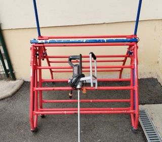vent paire de tréteaux de marque théard pliable,de 1m de large réglabe en hauteur jus qua a 2.m50a 3m prix 250 euros mélangeur de marque protool peut servi prix 50euros e