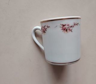 Véritable porcelaine de Limoges, 6 tasses à café avec sous-tasses. Liseré doré et motif. Décor grand feu inaltérable. Hauteur des tasses 6cm. Remise en main propre, pas d'e