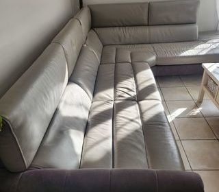 2 divans état très correct tissu gris 8 personnes assise de 205 cm (250 avec accoudoirs) profondeur 105 cm dossier inclus