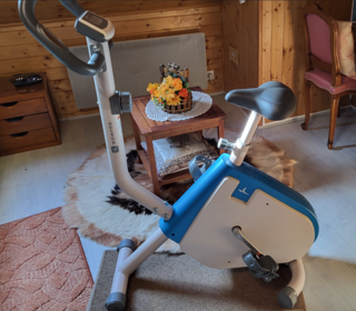 Fauteuil très confortable pied inox sur roulement pratiquement neuf.