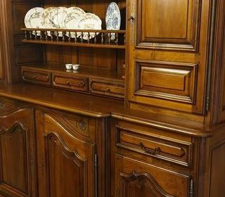 Enfilade ( 2m40) avec vaisselier, table style monastère avec 6 chaises assise paille , en noyer de France, le tout en excellent état. Possibilité lustre atypique