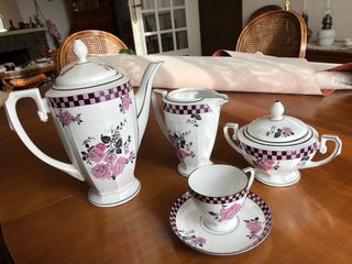 Service à café complet, comprenant 12 tasses et sous tasses, une verseuse, un sucrier et un pot à lait. MZ Altrohiau CMR