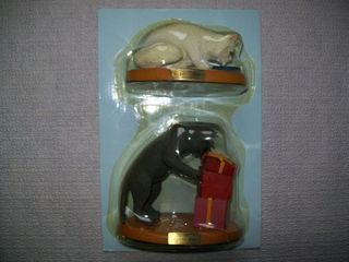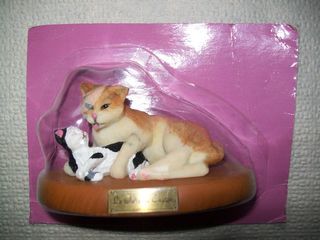 lot 2 chats en résine collection " L'Amour des Chats ", des " Editions ATLAS " - Année 2000 - - Le festin du Chat - Le Chat curieux Socle ovale avec feutrine en dessous, dimen