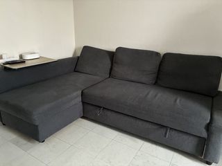 canapé 3 places convertible avec méridienne et son coffre de rangement n'hésitez pas à me contacter pour les mesures le prix est négociable