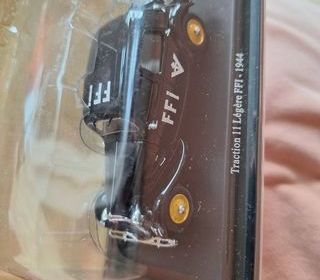 Traction 11 Légère FFI 1944 en métal à l'échelle 1/43.Replique d'après le modèle de 1944.Interieur reproduit .Pare-chocs,calandre et enjoliveurs chromés. Très bon état.