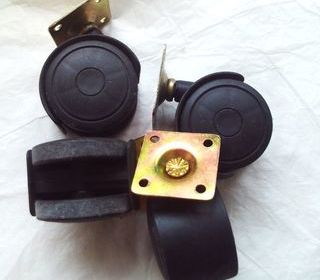 Lot de 4 roulettes : - Roulette pivotante à platine en acier embouti - Corps de la roue en polypropylène, diamètre 6,5 cm, pour sols intérieurs - Hauteur totale : 8,5 cm, dimen