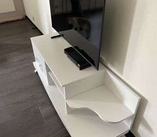 Vends ce meuble TV blanc en très bon état. - Type de produit : meuble TV - Couleur : blanc - État : très bon état (poignée cassé sinon tout est ok) - Prix : 50€ (acheter 11