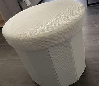 Vends ce pouf de rangement blanc. - Type de produit : pouf de rangement - Couleur : blanc - Utilisation : salon - État : bon état (défaut, tache, voir photo) - Prix : 10€