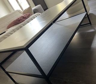 Vends cette table basse au design moderne et épuré. - Type de produit : table basse - Dimensions : 113 x 60 x 45 cm - Prix : 50€ (acheter 80€, je possède la facture) - État :