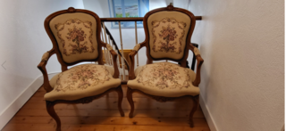Vends 2 fauteuils style Louis XV, belle fabrication française, en très bon état. Disponible de suite. Pas de livraison. Possibilité de vente à l'unité pour 140euros. 260 les deux