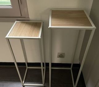 Vends ces tables d'appoint en bois et métal blanc. - Type de produit : table d'appoint - Matériau : bois et métal - Couleur : blanc - État : très bon état - Prix : 10€