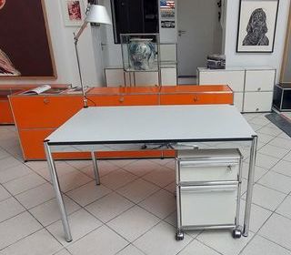 Vend une table usm haller blanche 150 x 75, Son prix 490€€ à retirer à Provins Seine-et-Marne. Vend un caisson sous bureau usm haller blanc 2 tiroirs, tiroir du haut avec amé
