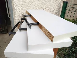 Je vends 1 Lot d'étagères de 3 . (Acheté à Leroy merlin)) Dimensions: Longueur 60 cm, Profondeur 25 cm, Epaisseur 4 cm. - Type de produit : Étagère - Matériau : Bois - Coule