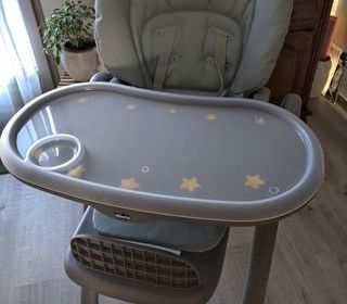 Vends chaise haute avec roulette, évolutive de la marque Chicco Polly Magic, idéale pour les tout-petits. avec tous les accessoires en très bon état. Cette chaise à peu servie, é